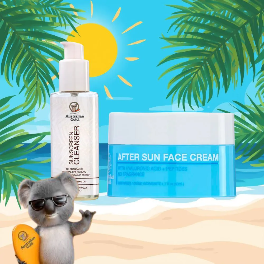 Čistilno olje za obraz Australian Gold pomaga učinkovito odstraniti nečistoče, ostanke ličil in druge delce s kože, pri tem pa ohranja občutek mehkobe in ne izsuši obraza. After Sun krema za obraz Australian Gold pa kožo po sončenju pomiri, osveži in dodatno navlaži, kar je še posebej pomembno po dnevu na soncu. Ta akcijski komplet je zato idealna rešitev za vse, ki iščete popolno poletno rutino za nego obraza v eni ugodni ponudbi.